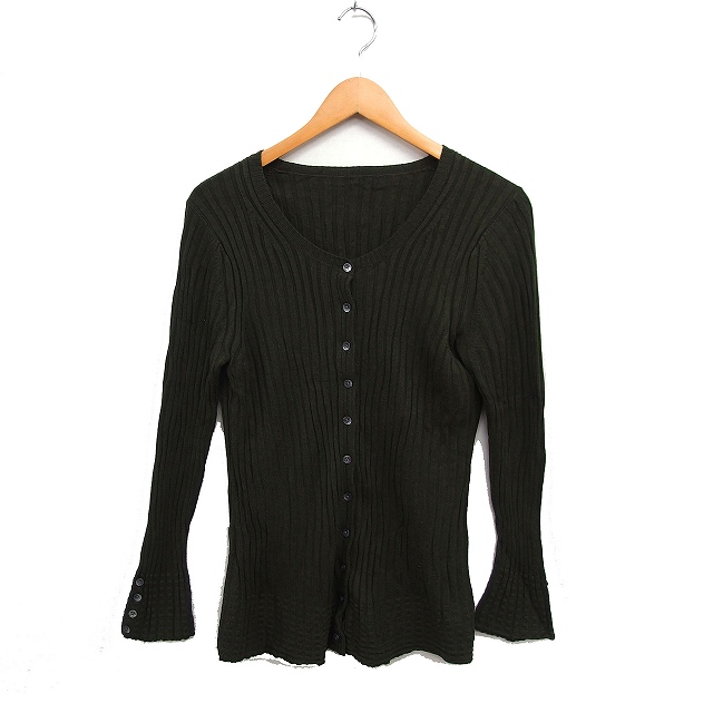 【中古】オットー OTTO リブ ニット カーディガン 無地 綿混 LL ダークグリーン 深緑 /FT7 レディース