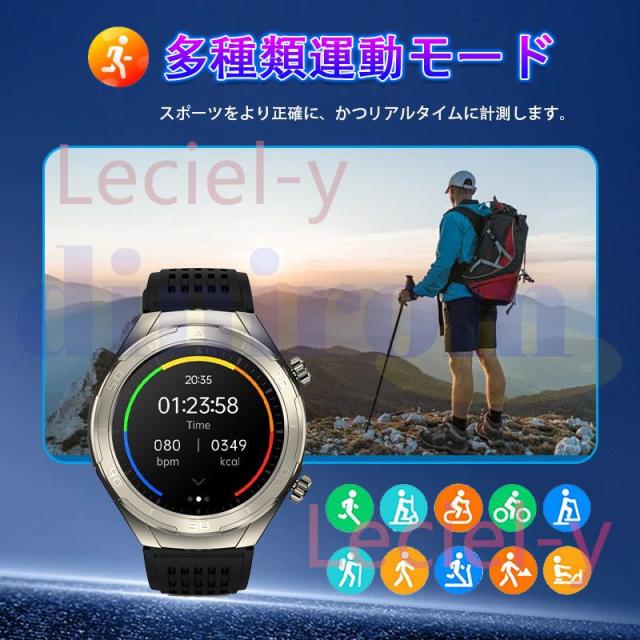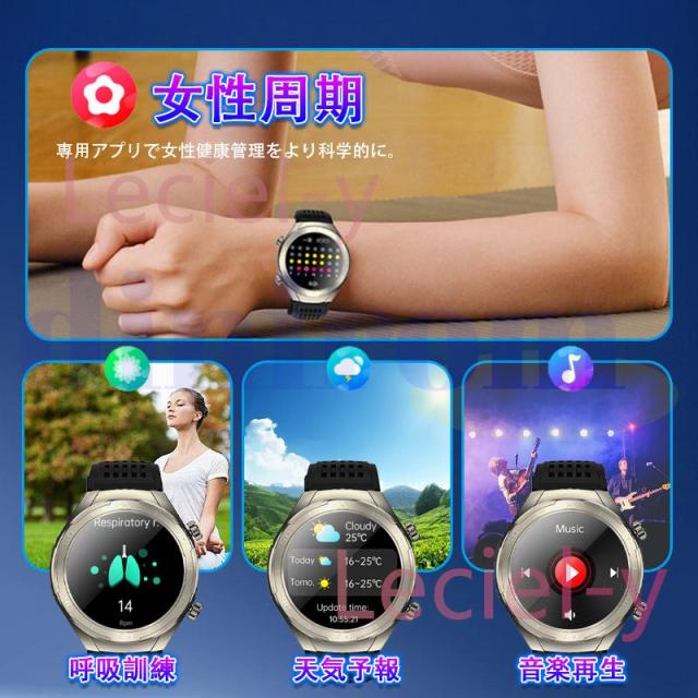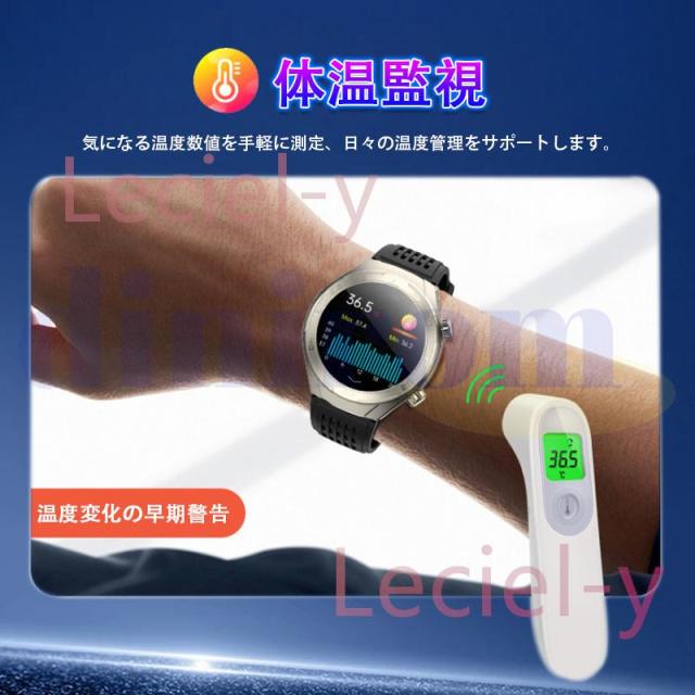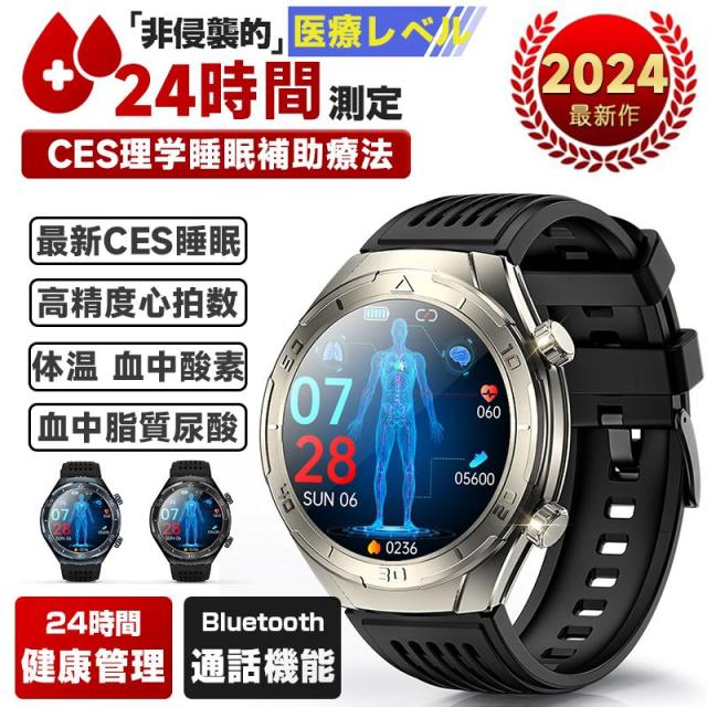 ●24H健康管理:血中脂質、尿酸値、多機能測定測定、通話可能、 、MET代謝当量、24時間体温監視、アラート、AI診断測定、血中酸素、睡眠監視や心拍数などの測定機能付き