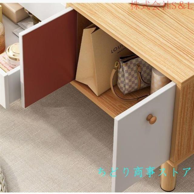 【素材】本体:合成樹脂化粧繊維板(メラミン樹脂) 【耐荷重】天板:約5kg 【備考】※お客様組み立て品 ※一見すると普通のセンターテーブル、でも実はドレッサーにもなるんです!これならセンターテーブルの場所だけでドレッサーも置けるので、お部屋を広く使えますね.コスメグッズの背の高いものも、深型スペースがあるのできちんと収納。