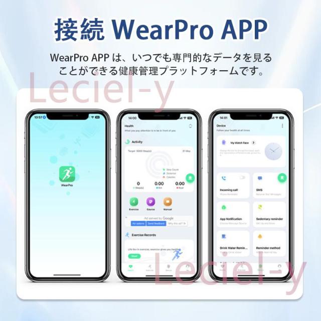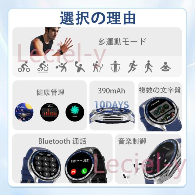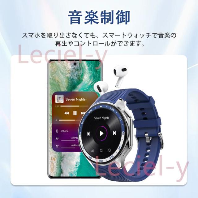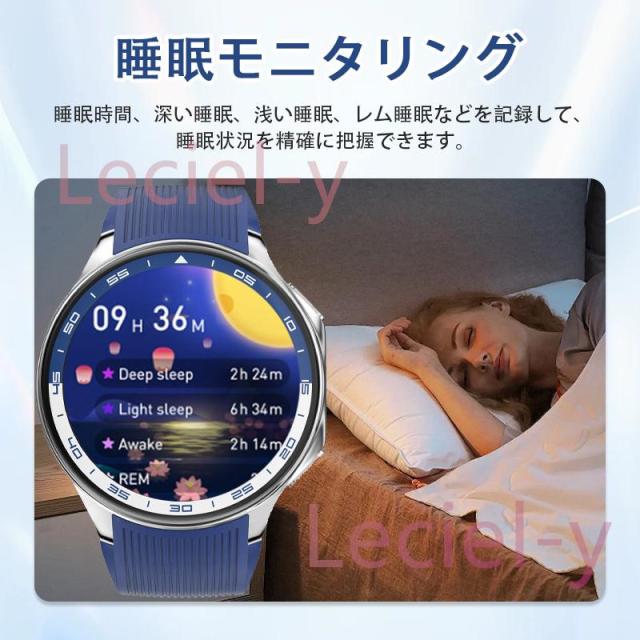 ディスプレイ:1.43インチサイズ:長さ220mm×幅46.7mm×厚さ11.5mm対応OS:Android 4.4以降、iOS 10.0以降Bluetooth:BLE5.3バッテリー容量:390mAh防水:IP68●24H健康管理:通話可能、24時間健康監視、アラート、AI診断測定、血中酸素、睡眠監視や心拍数などの測定機能付き●メッセージ通知機能:電話、着信、メッセージ、Lineなど全部対応●他にも目覚まし時計、座りがち注意などの多機能が搭載され、毎日の生活習慣の改善に役立ちます●録音、32GB大容量メモリ(最大500曲の音楽をダウンロード可能)、写真アルバム、ビデオ再生可能、TWSイヤホン対応、ワイヤレス充電式、多文字盤変更可能※注意:※当商品は医療機器ではありません。提供されたデータや情報はあくまで参考用です。※故障を避けるために、5V2A以下の非急速充電アダプターを使ってください。【キーワード】2025最新 多機能測定 録音 ワイヤレス充電 通話可能 血中酸素 睡眠監視 心拍数 天気予報 心拍計 健康管理 防水 IP67 大画面 コロナ太り 着信 LINE 通知 iPhone Android 対応 プレゼント 父の日 母の日 敬老の日 誕生日 夏祭り ギフトご注意:※故障を避けるために、5V2A以下の非急速充電アダプターでの充電をおすすめします。※IP67防水は完全防水ではない為、ダイビング、海での水泳、またはサウナでの使用には適しません。