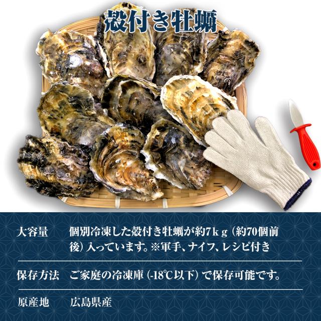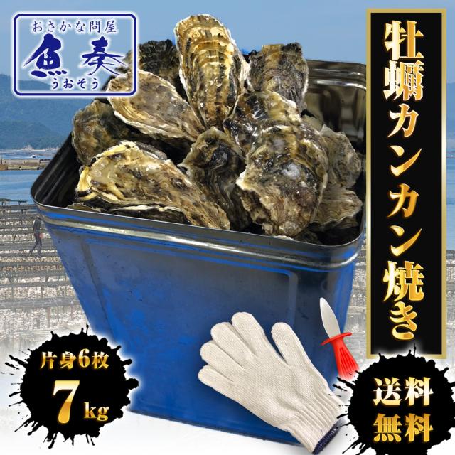魚奏 広島産 殻付き牡蠣 訳あり 7キロ(約75個) カンカン焼き カキ かき 宮島 BBQ ナイフ 軍手付 ギフト 取り寄せ 送料無料