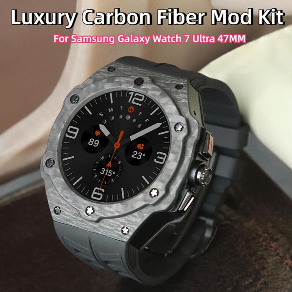 サムスンギャラクシーウォッチ用カーボンファイバーモディフィケーションキット,カーボンケース,ラバーストラップ,7ウルトラ,47mm,ラグジュアリー