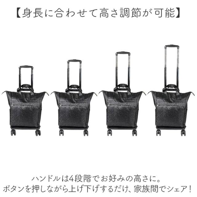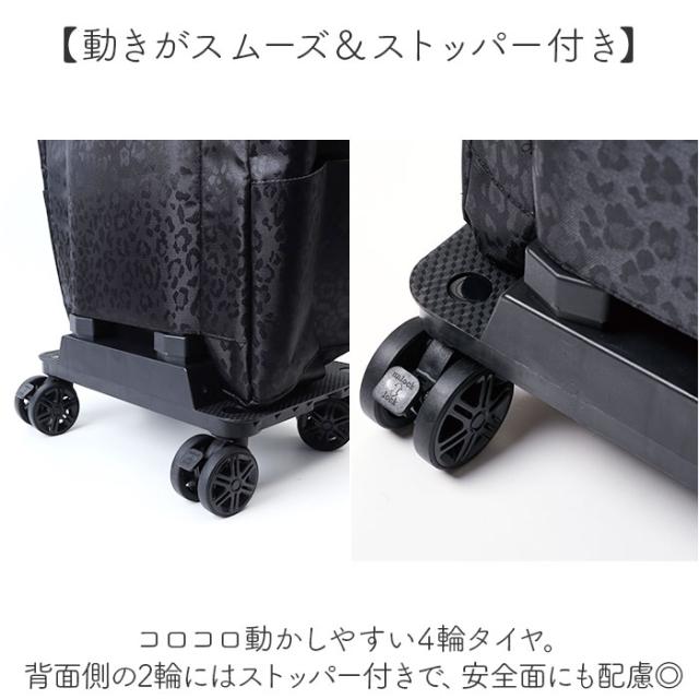| 商品説明 | 【荷物をラクに運べる心強い味方】 ・いつものお買い物が、グンと快適に☆デイリーに使える「cocoro 2WAY4輪カート」。 【身長に合わせて高さ調節が可能】 ・ハンドルは4段階でお好みの高さに。ボタンを押しながら上げ下げするだけ、家族間でシェア! 【女性でも持ち運びやすい軽量設計】 ・本体の重さは約1.8kg。女性や高齢の方も扱いやすいのが、嬉しいポイント。 (※)当店で計測した、組み立て時の重量です。 【ガバっと開くダブルファスナー】 ・バッグは左右どちらからもサクッと開閉。大きく開いて、荷物の出し入れがスムーズ◎ 【食材がしっかり入りデイリーに活躍】 ・容量約18L、耐荷重は10kg。2Lペットボトルも数本収まり、お買い物時に頼れる相棒♪ 【安定した状態で持ち運び可能】 ・マチ広で取り外し可能な底板付き。お弁当や衝撃で傷みやすいフルーツなども安定感をキープ。 【用途に応じて使える便利なポケット】 ・合計4つのポケットを配置。水分補給用のペットボトルやハンカチなどをIN。 【工具不要でどなたでも簡単セット】 ・ハンドルアームを立ち上げて固定。バッグは背面の通し口と底面ベルトでフレームに装着。 【動きがスムーズ&ストッパー付き】 ・コロコロ動かしやすい4輪タイヤ。背面側の2輪にはストッパー付きで、安全面にも配慮◎ 【使わない時の収納も省スペース】 ・フレームを折りたたんで、スリムに収納。自宅での収納に困らないのもポイント。 【お好みに合わせてスタイルチェンジ】 ・カートとしてだけでなく、バッグ単体でも使用OK。シーンや荷物量に合わせて使い分け! 【お好みで選べるラインナップ】 ・落ち着きのあるレオパード柄や、シンプルな無地タイプ。年代問わず使いやすい♪ 【ポケット仕様】 ・内側:ファスナーポケット×1 ・前面:ファスナーポケット×1 ・サイド:オープンポケット×2 |