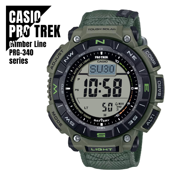 国内正規品 CASIO カシオ PRO TREK プロトレック Climber Line デジタル ソーラー充電 方位 気圧/温度 高度 PRG-340B-3JF グリーン 腕時計 メンズ
