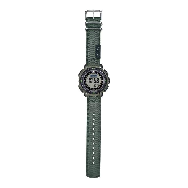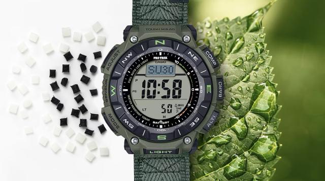 自然を愛する人に向けた本格アウトドアギアPRO TREKより、環境負荷低減への貢献が期待される素材を採用したソーラー搭載モデル「PRG-340」です。