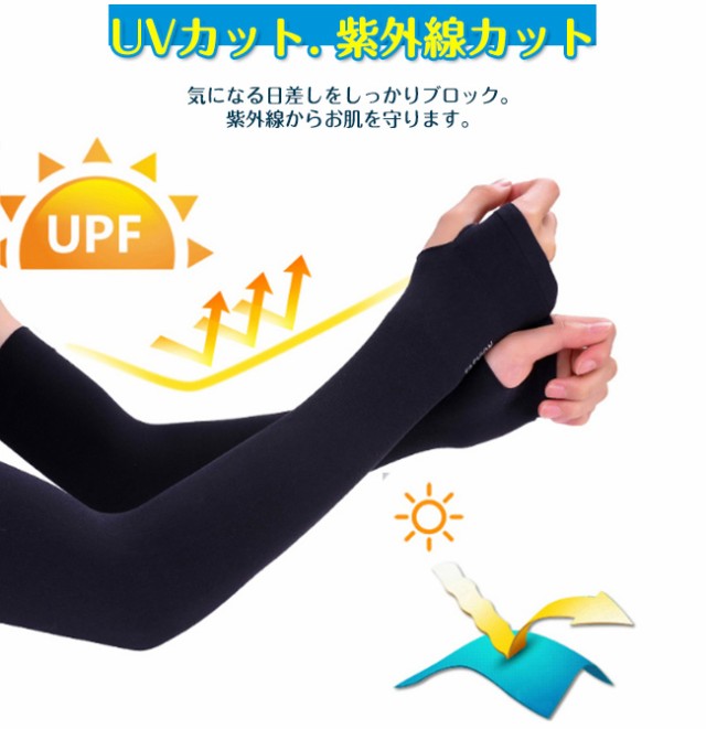 即納 アームカバー涼しい ロング 2タイプ 指穴 腕カバー uv手袋 レディース メンズ 男女兼用 吸水速乾