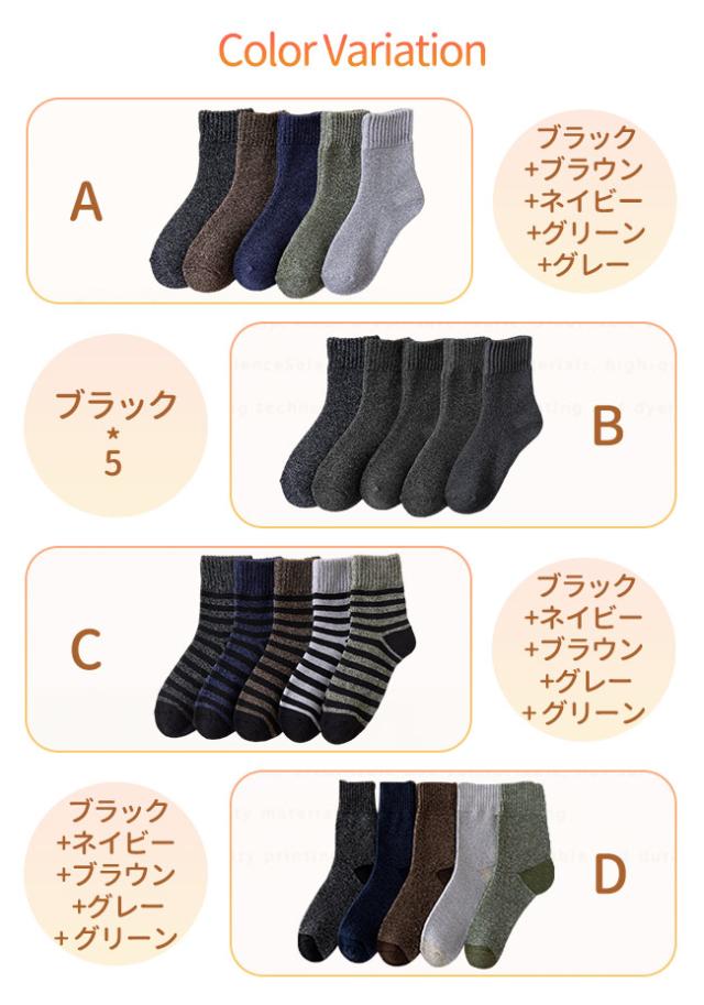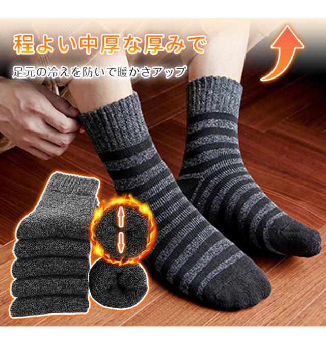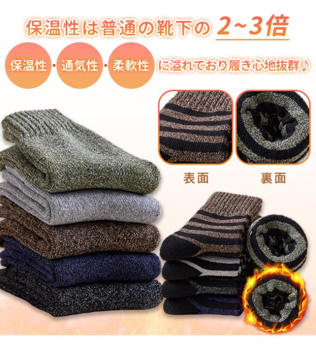 靴下 ソックス 厚手 5足セット メンズ あったか 秋冬用 保温 防寒 伸縮性 男女兼用 屋内 屋外 アウトドア