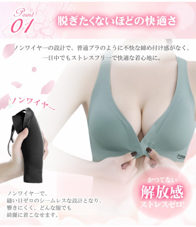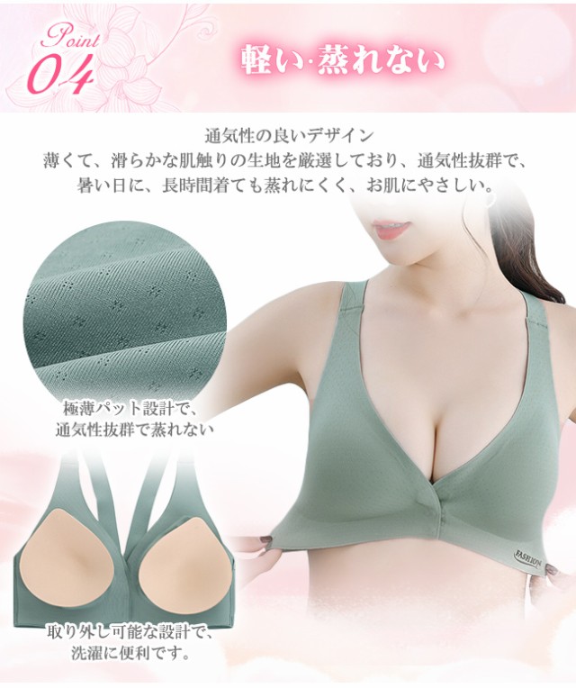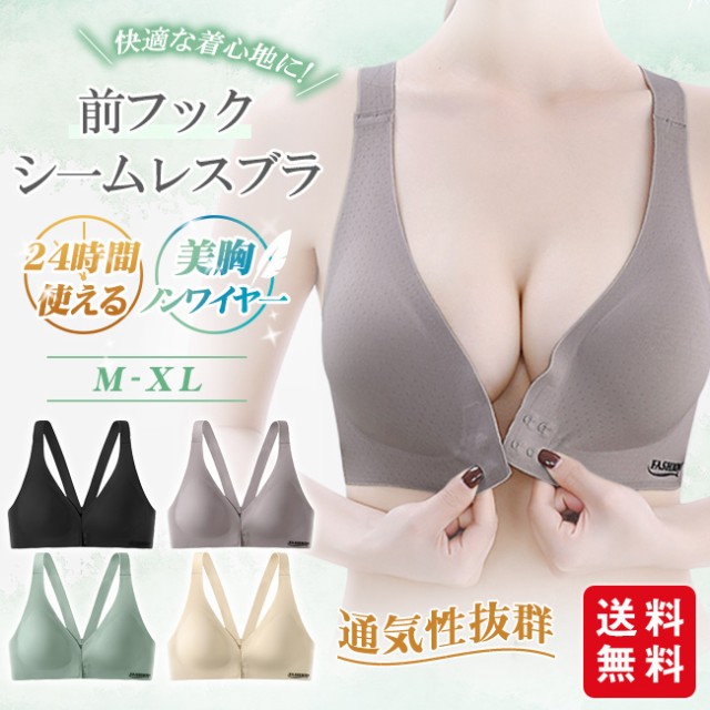 ナイトブラ ブラジャー ノンワイヤー シームレス 美胸 パッド付き 取り外し可能 前ホック フロントホック インナー 下着