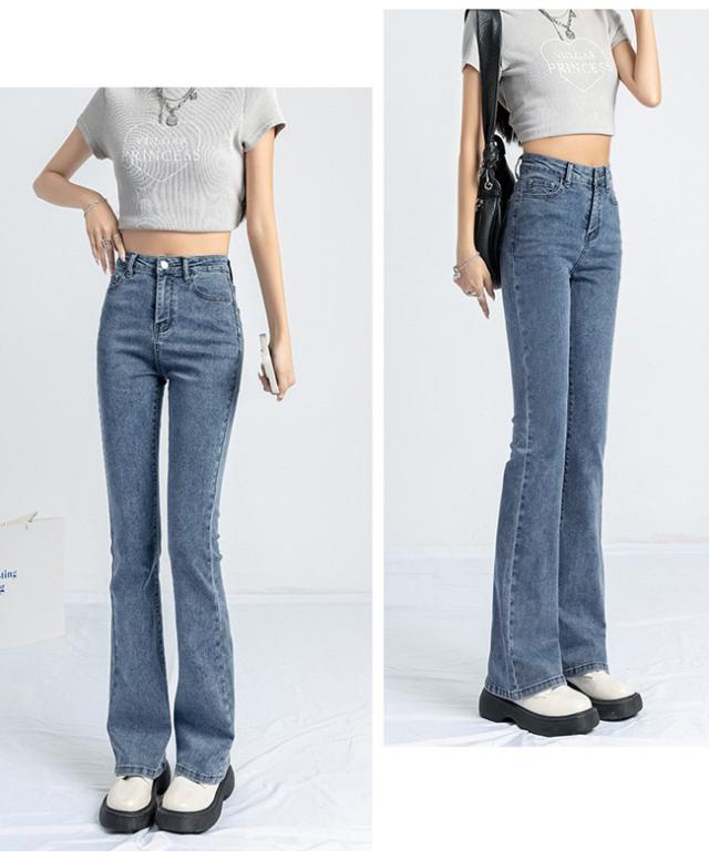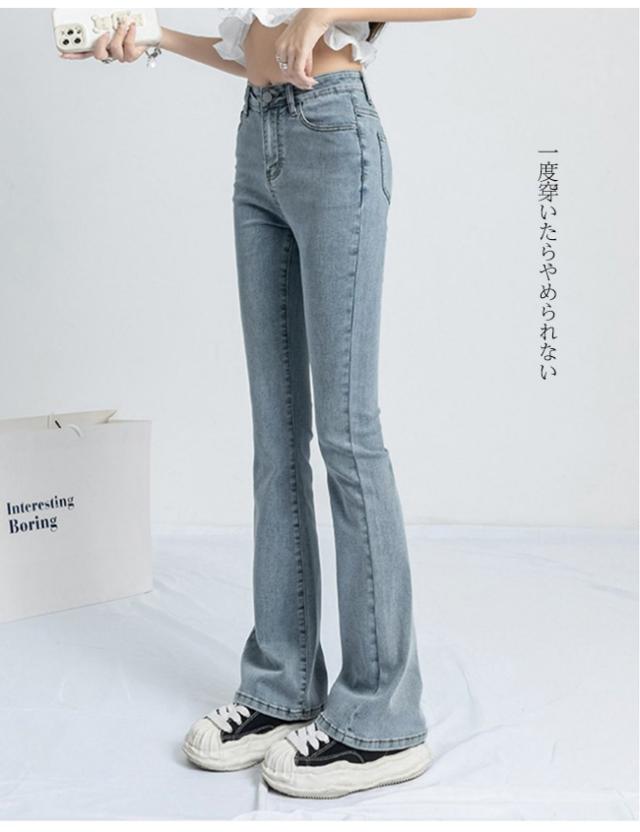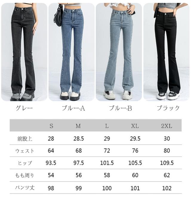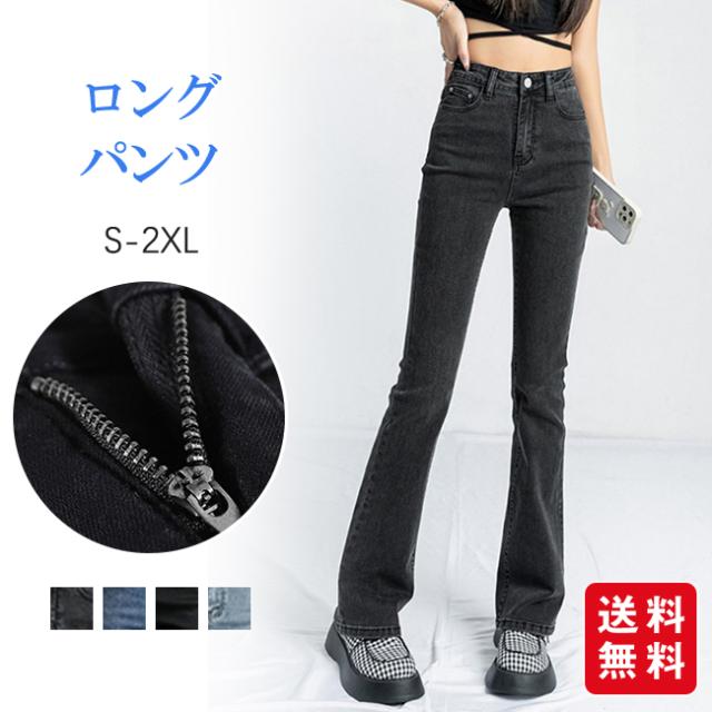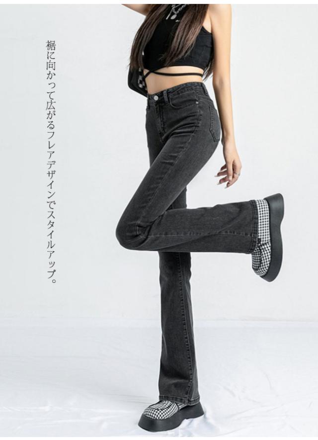 パンツ ロングパンツ デニムパンツ デニム ハイウエスト ストレッチ フレアパンツ フレア ジーンズ 美脚 体型カバー 春秋