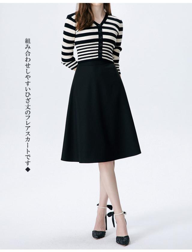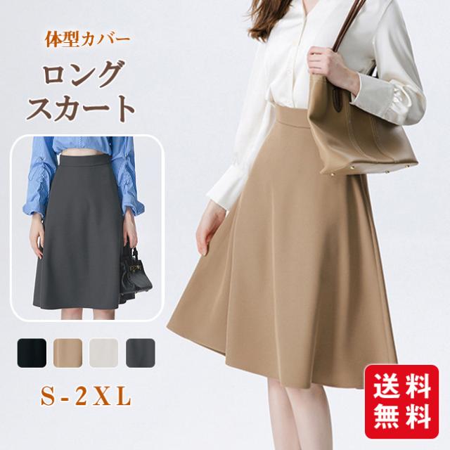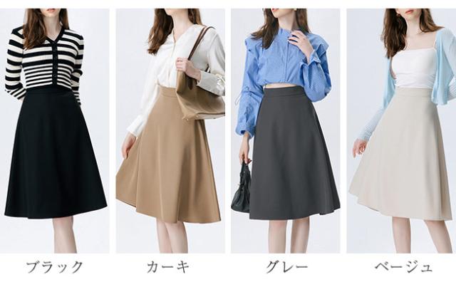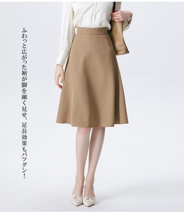 スカート レディース フレアスカート 膝丈 ハイウエスト 美脚効果 事務服 オフィス シンプル 大きいサイズ 通勤 OL 卒業式 入学式 二次会 同窓会 結婚式