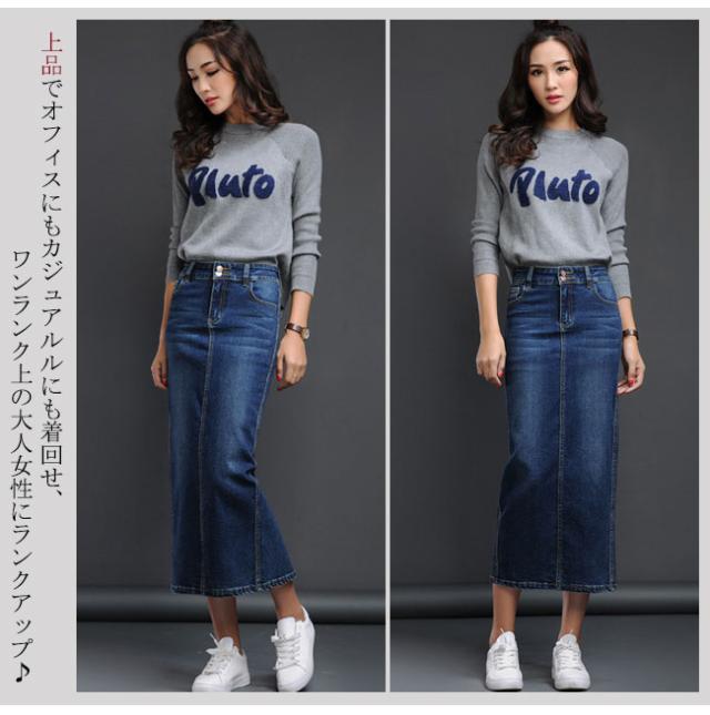 デニムスカート ロング レディース ロングスカート ボトムス タイトスカート 大きいサイズ 無地 シンプル