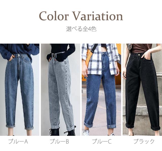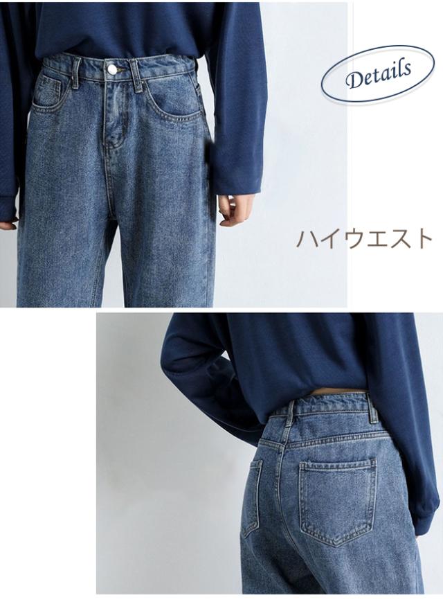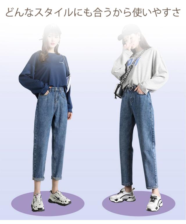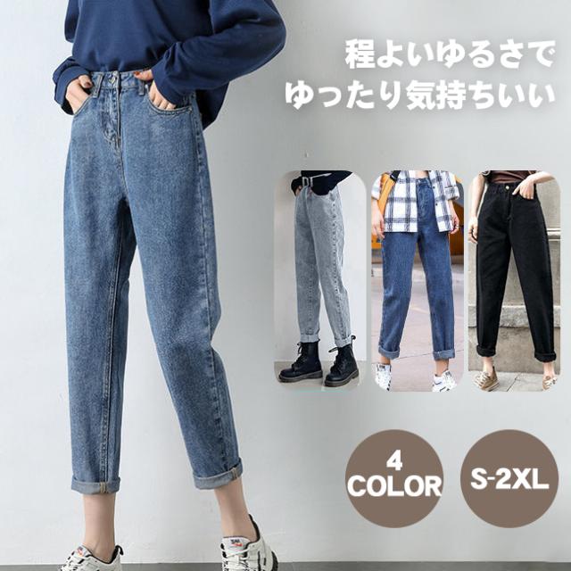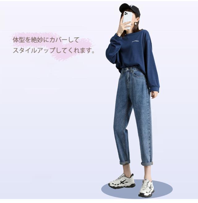 デニムパンツ レディース ジーンズ ズボン ボトムス ハイウエスト 9分丈 カシュアル 体型カバー ゆったり 美脚