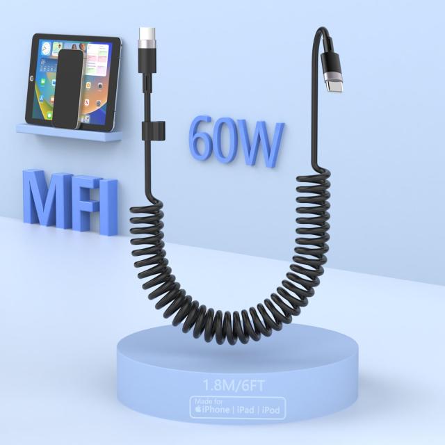 ◆商品名:【60W/i Phone 15】USB Type C ケーブル巻き取り式(0.4-1.5M) 60W 5A PD QC4.0 急速充電 高速データ転送 Carplay Android Auto USB C to U