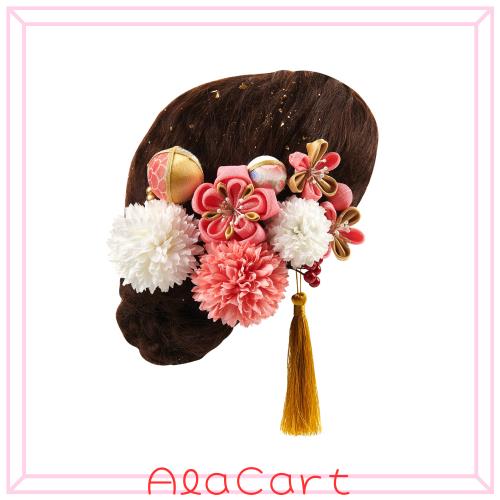 【髪飾り用途】お花の髪飾りです。成人式の髪飾りは前撮りに最適。夜会巻き、アップヘア、サイドアップ、お団子、編み込みなど人気のまとめ髪の補助やアクセントにオススメです。大人の方は結婚式、パーティー、謝恩会、成人式、卒業式など華やかなお席の和装、振袖姿や浴衣のコーディネートにぴったりします。お正月、お祝い事、桃の節句、七五三、卒園式などにオススメです。