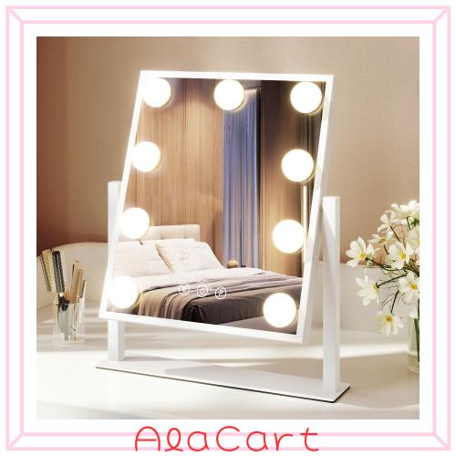 ?【9個LEDライト 化粧ミラー】9個高輝度LED電球が搭載され、本当の自分を映す、ムラなく顔全体を均一に照らすことができます。