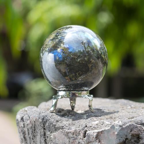 Crocon ラブラドライトクリスタルスフィアとメタルスタンドジェムストーンスフィアヒーリングボール彫刻風水占い用置物家の装飾サイズ:45-55 mm