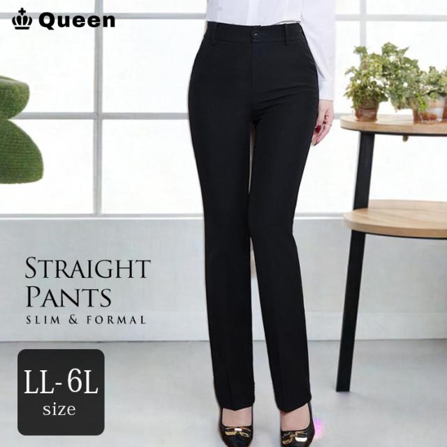 ★☆大きいサイズ レディース パンツ スラックス 黒 オフィス ウエストゴム 通勤 事務服 スーツ 制服 LL 3L 4L 5L 6L☆★