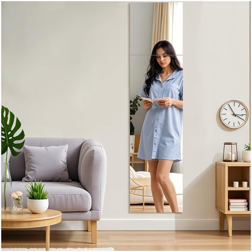 【安心・安全 割れない鏡】全身鏡は非ガラス素材を採用しており、従来のガラス鏡の破損による安全リスクを完全に排除しました。お子様やご高齢の方、ペットがいるご家庭に特におすすめです。万が一、ぶつかったり落下したりしても怪我の心配がなく、家族全員に安心と安全を提供します。一枚あたりのサイズは27cm×19cmで、6枚軽量で持ち運びや取り付けも簡単です。