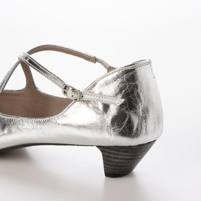 華奢なクロスストラップが甲をおさえ、ホールド感のある履き心地です。