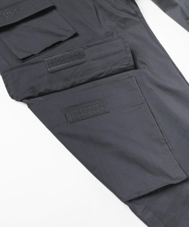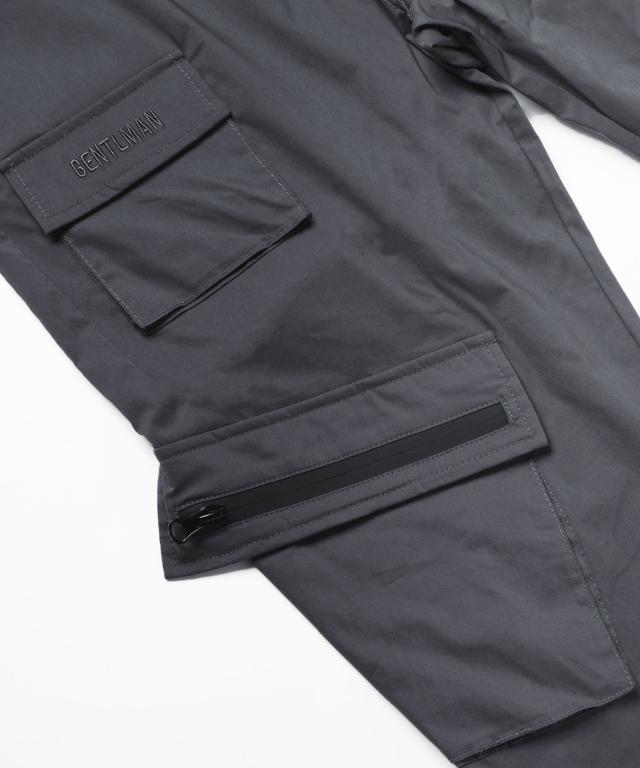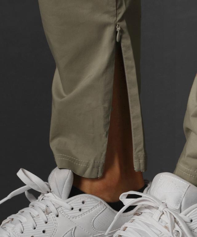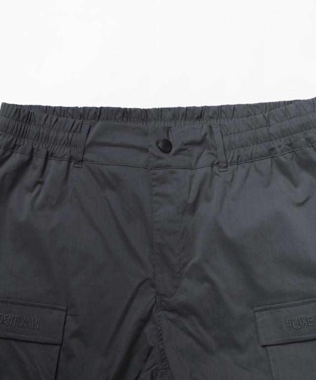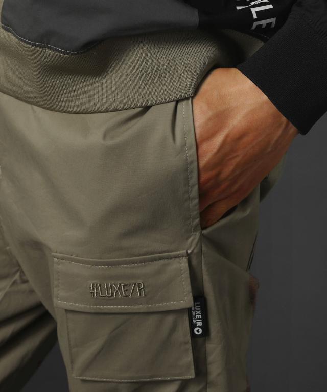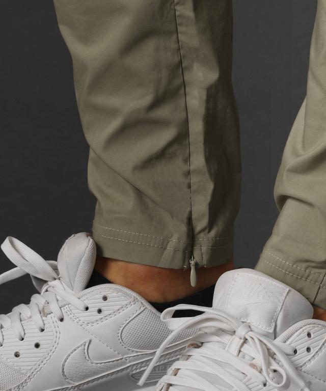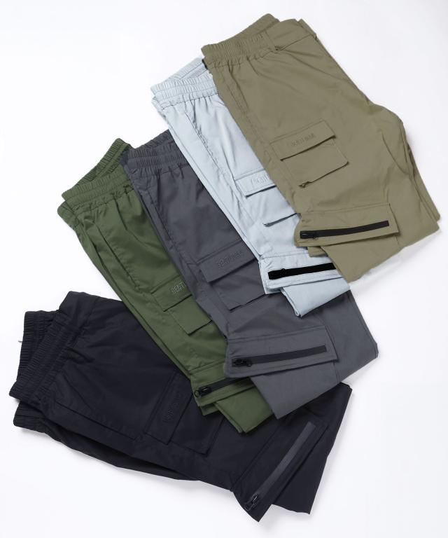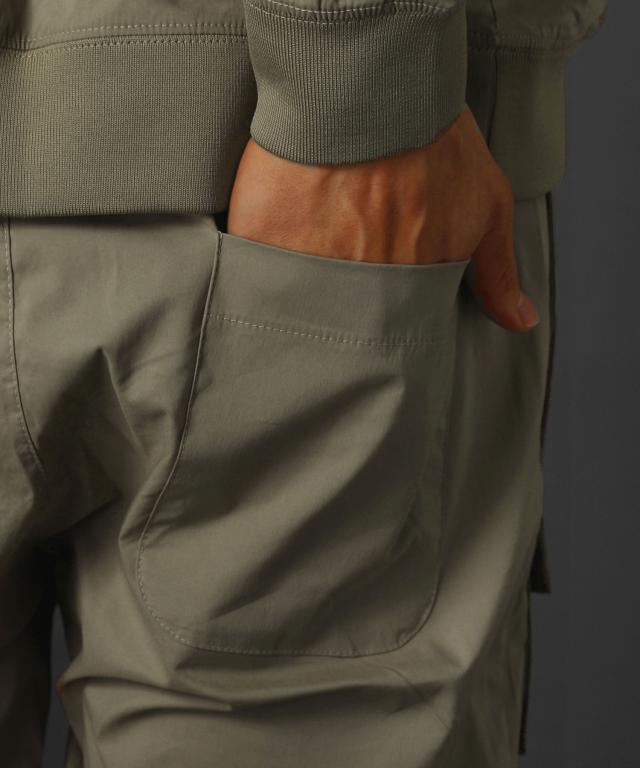 ベルトループ付き撥水加工ストレッチ布帛ダブルカーゴポケット裾ジップパンツ
