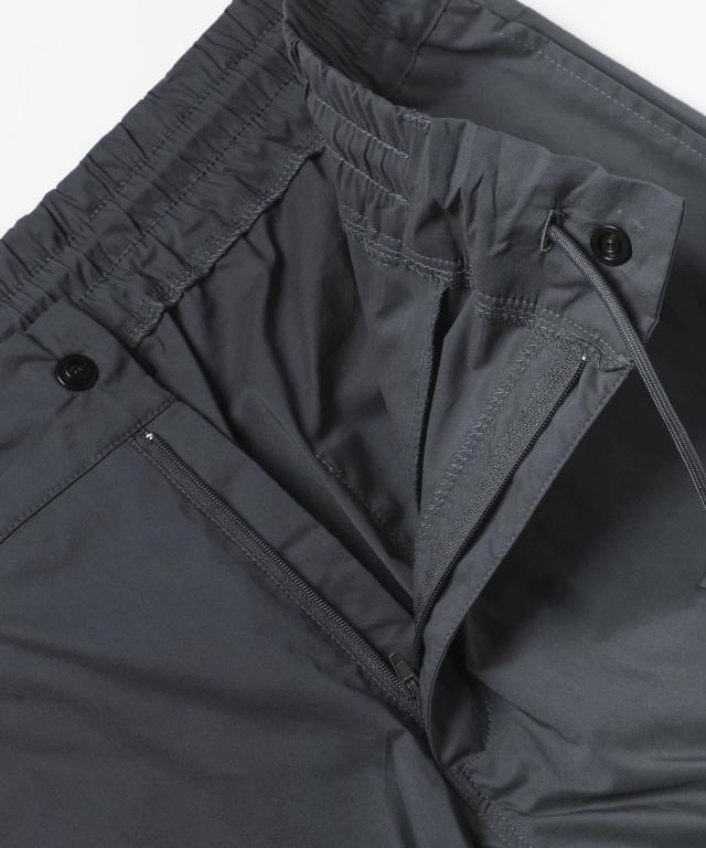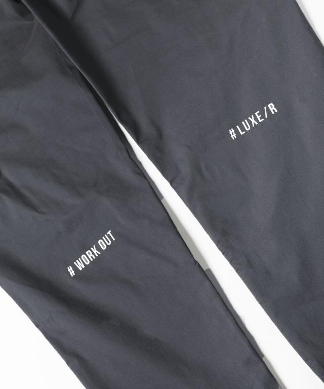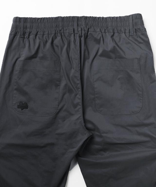 ふくらはぎ部分にさり気ないプリントを入れ、左後ろにはスタンプのように押されたラバー製のロゴを配し遊び心をプラス。どの角度から見ても目を引くスタイリッシュな一本に仕上げました。程よくストレッチをきかせることにより、デザイン性だけでなく動きやすさも向上させ、穿き心地の良い細身のシルエットに仕上げました。裾の内側には脱ぎ穿きしやすさを考慮したジップが付いており、足が通しやすくなるだけでなく、着こなしのアクセントにご利用いただくこともできるディテールです。