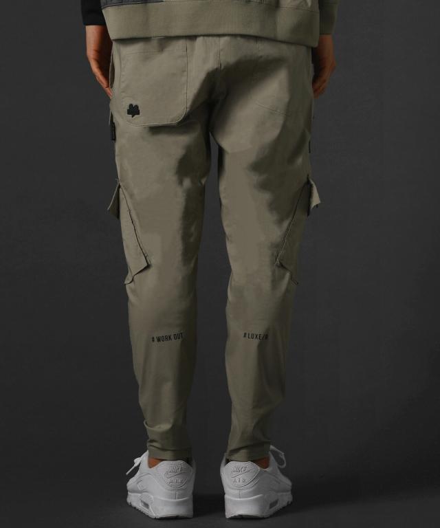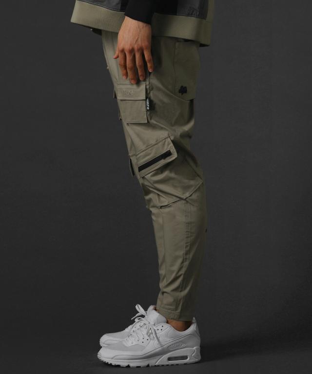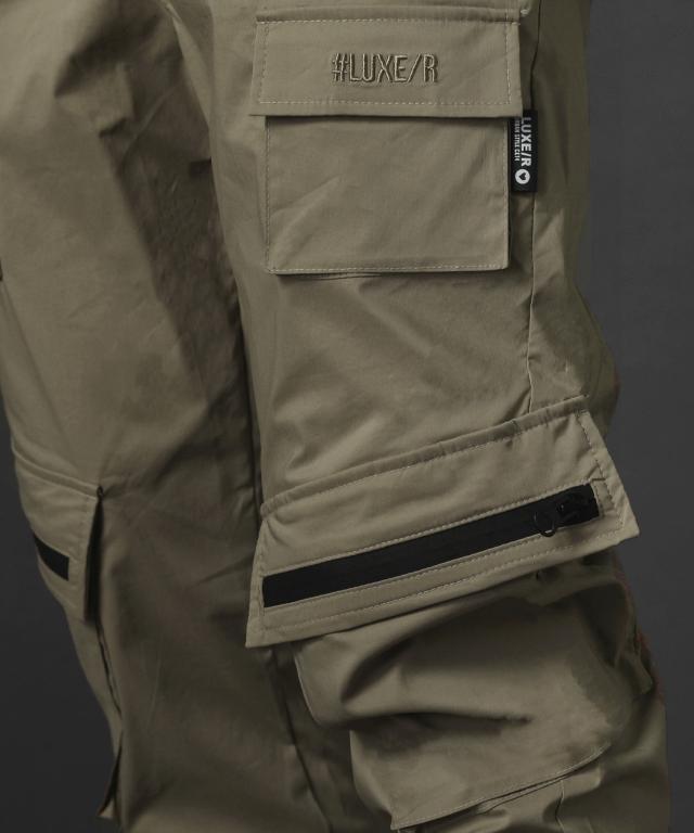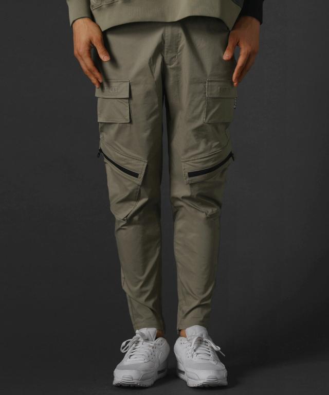 レジェス(REZES)/ベルトループ付き撥水加工ストレッチ布帛ダブルカーゴポケット裾ジップパンツ