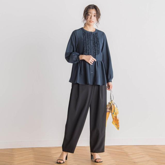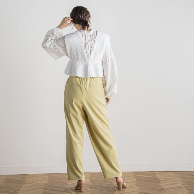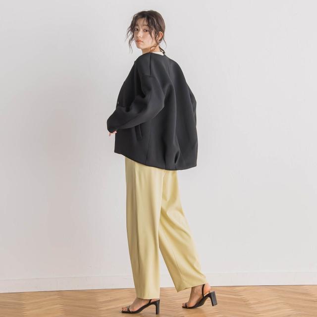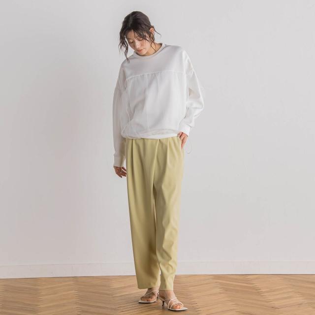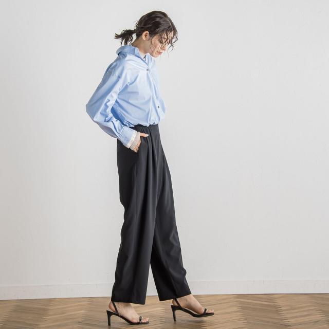 フロントにはギャザーを入れておらずフロントインの着こなしもすっきりときまります。