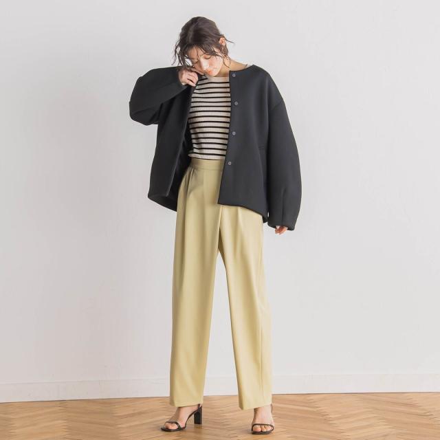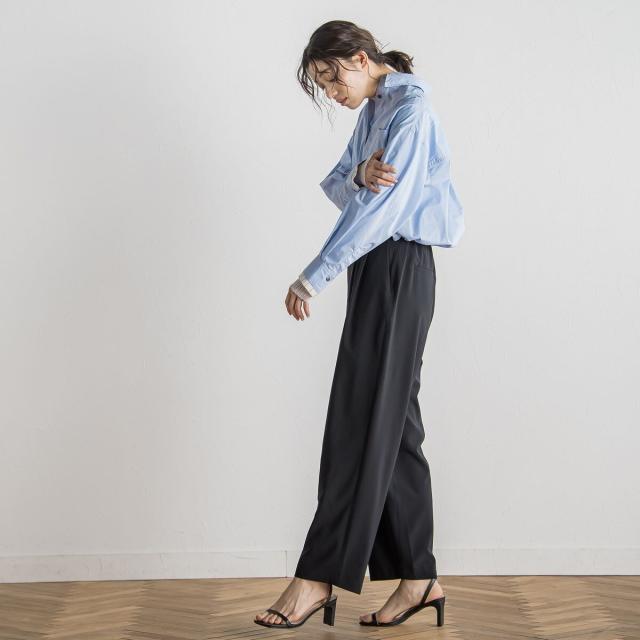 マニッシュなムードと女性らしさを兼ね備えたムードでクロップドトップスとの相性抜群です。