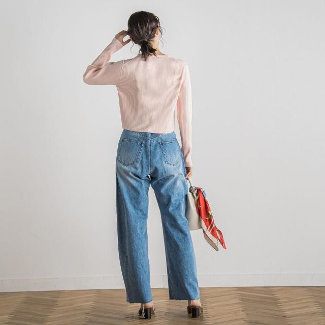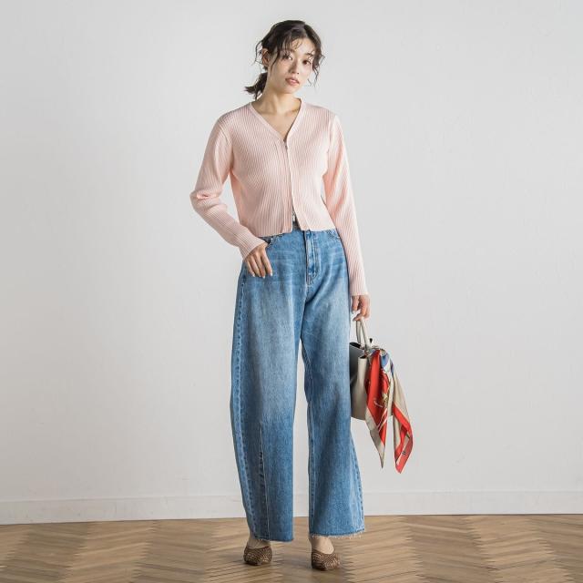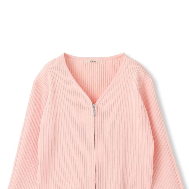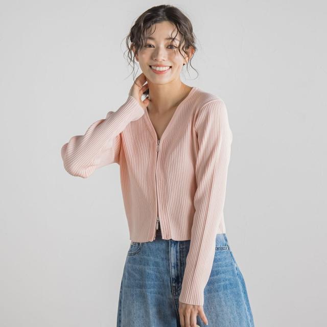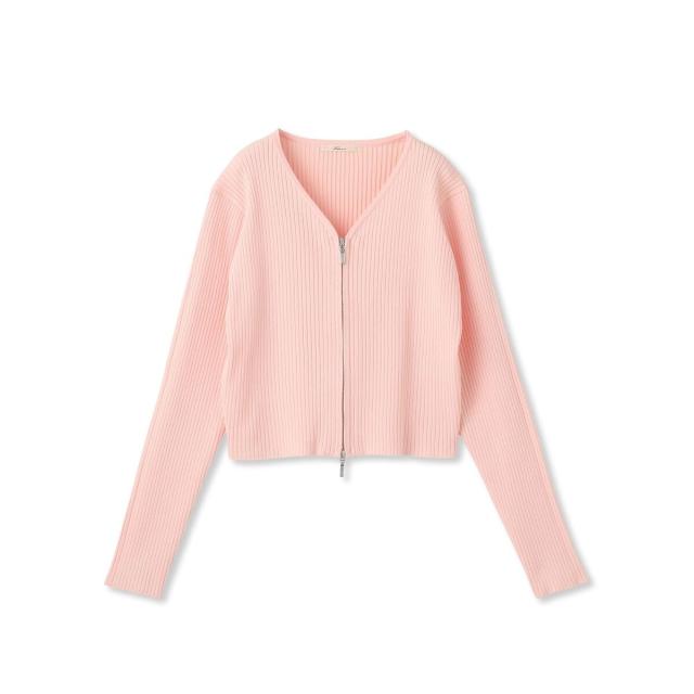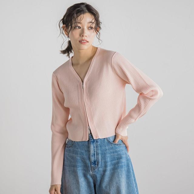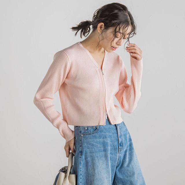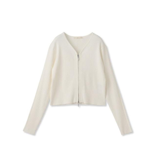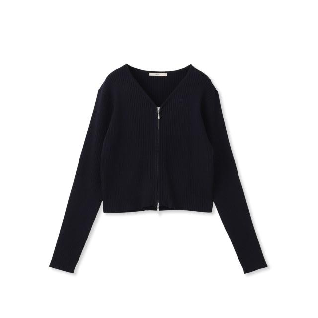 ダブルジップデザインがポイントになったコンパクトなリブカーディガン。