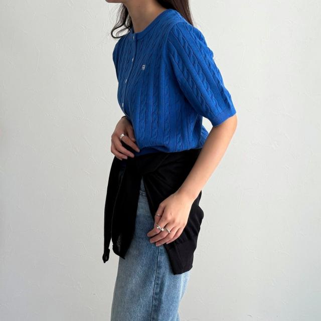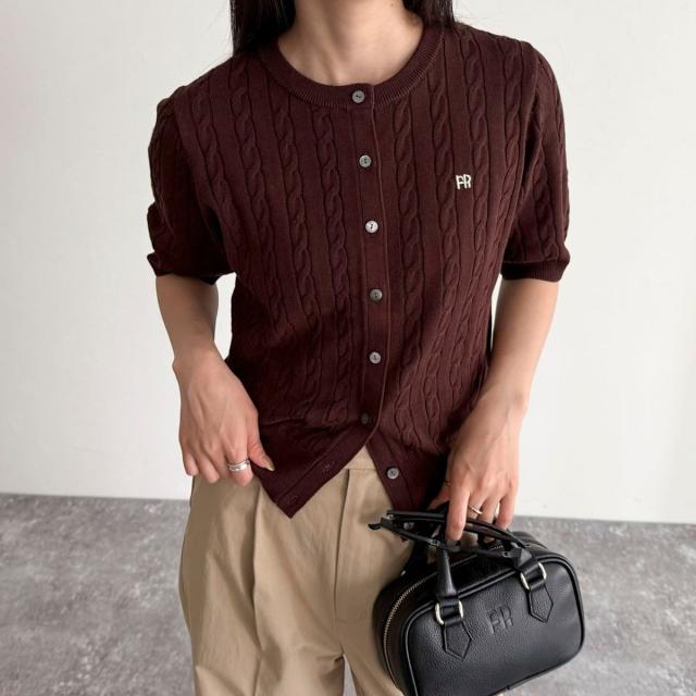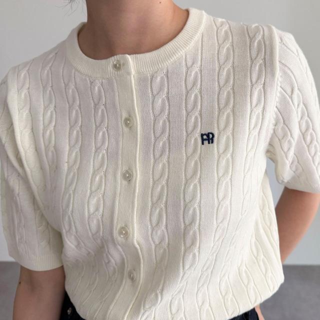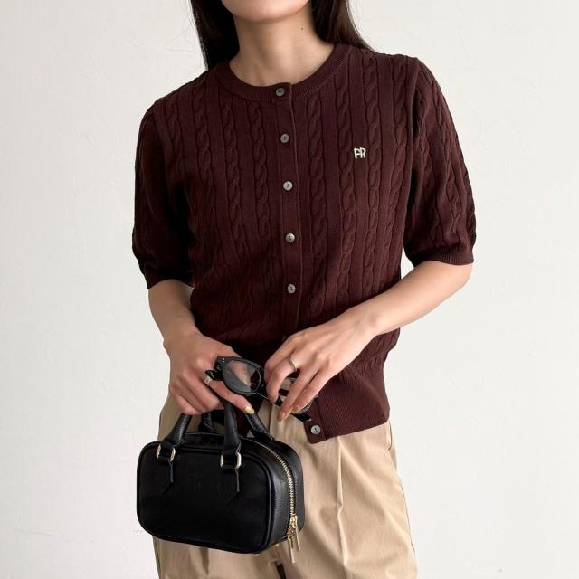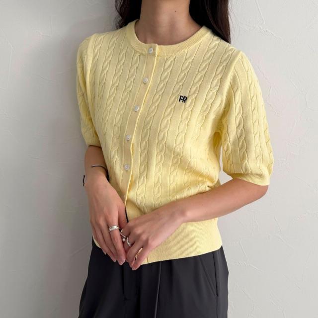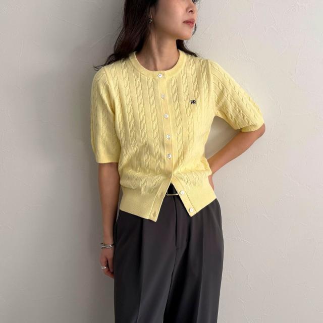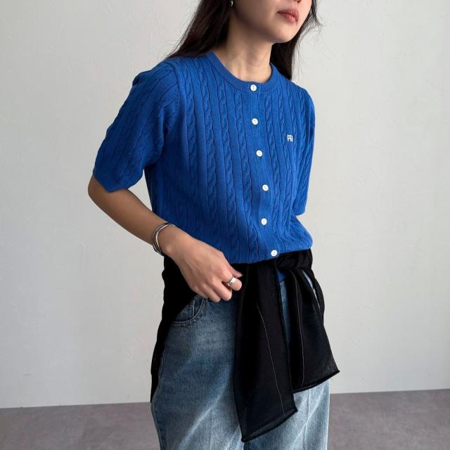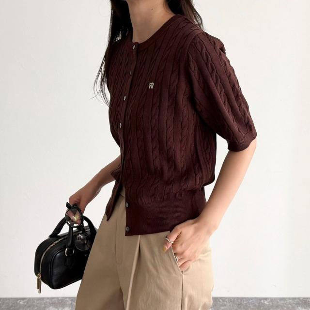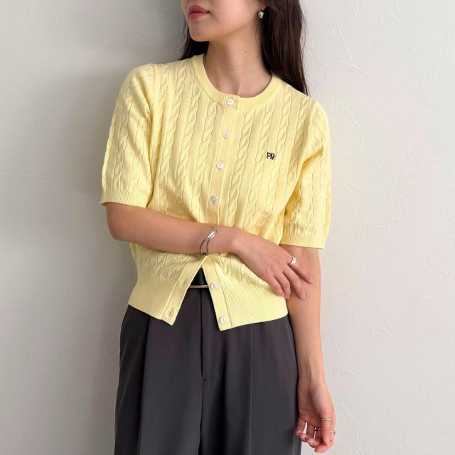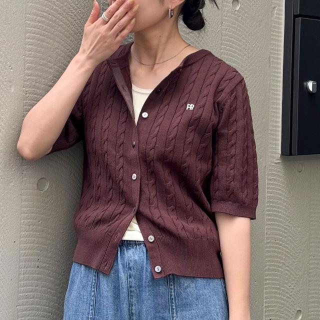 ・カラーバリエーション豊富なFR刺繍ケーブル柄半袖カーディガンです