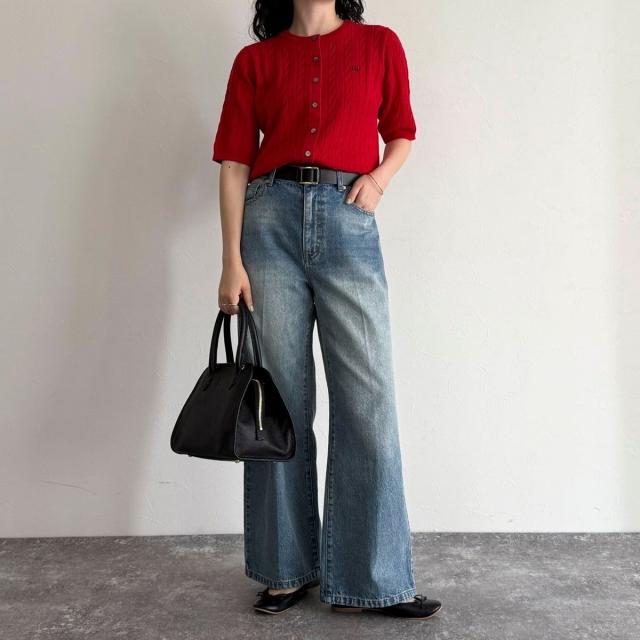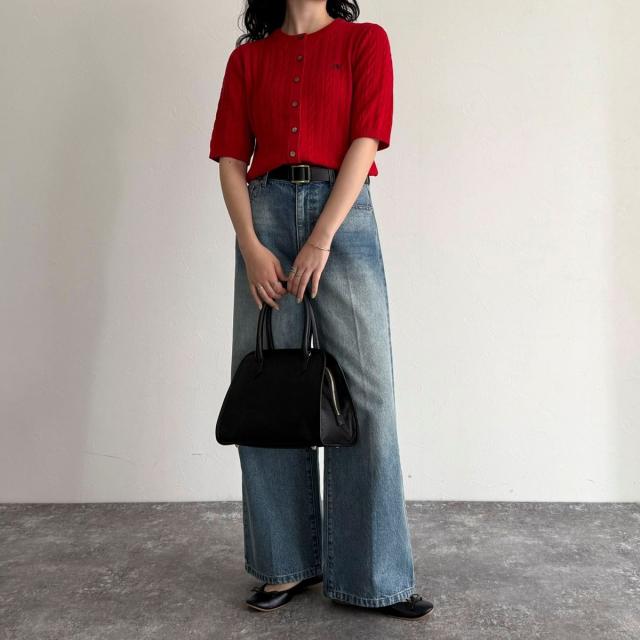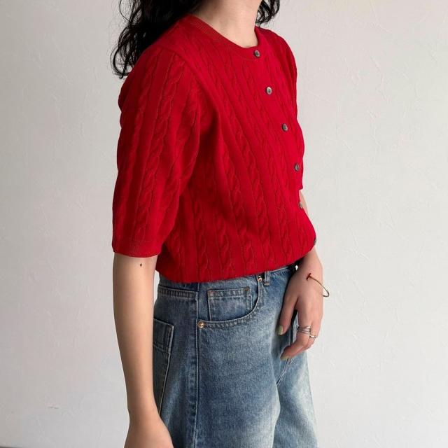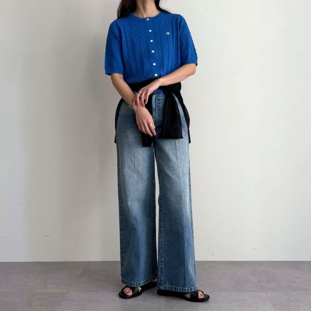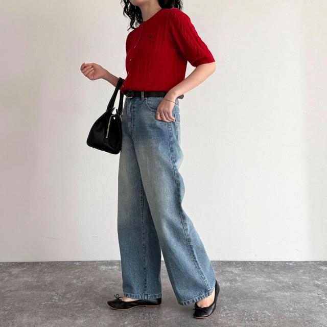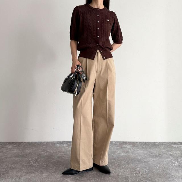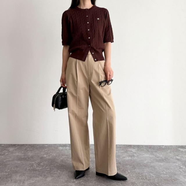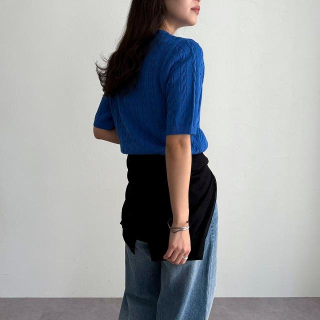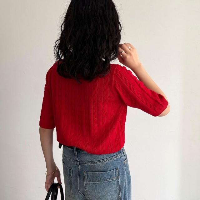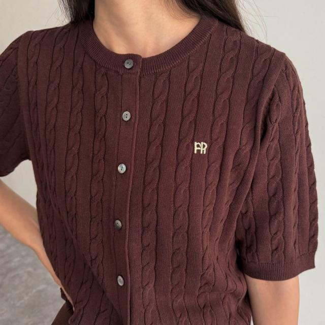 ・カラーバリエーション豊富なFR刺繍ケーブル柄半袖カーディガンです