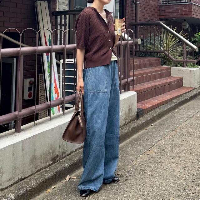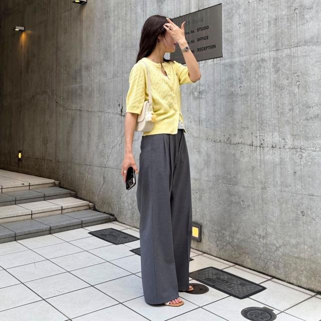 ・すっきりとしたシルエットなので、ボリュームのあるボトムとも相性抜群◎