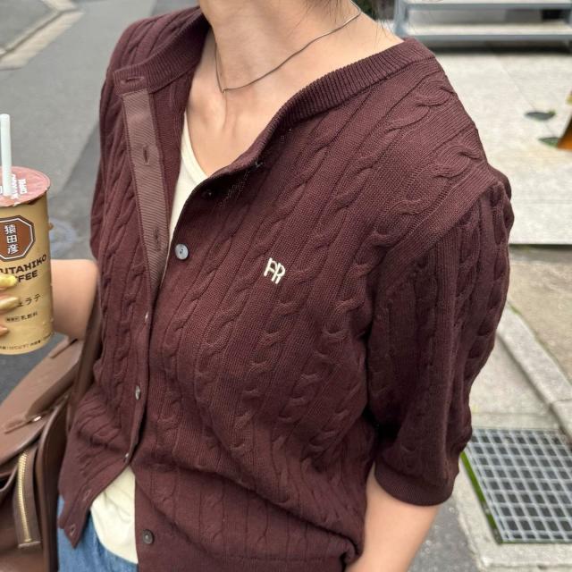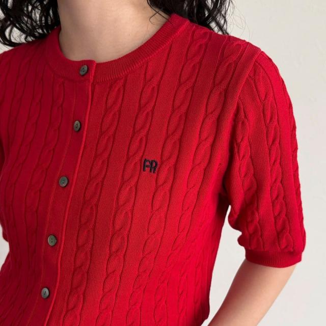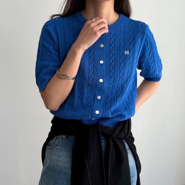 フレディ&グロスター(FREDY&GLOSTER)/FR刺繍ケーブル柄半袖カーディガン