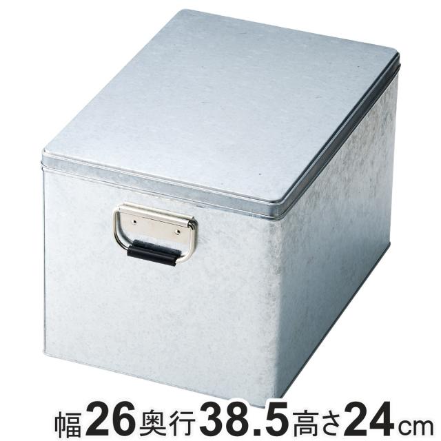 収納ボックス トタン収納 フル ブリキ ふた付き 幅26×奥行38.5×高さ24cm ( 収納ケース 収納 ボックス ケース 収納箱 蓋付き 持ち手付き スチール製 小物収納 工具箱 工具入れ レトロ インテリア おしゃれ 角型 整理整頓 )