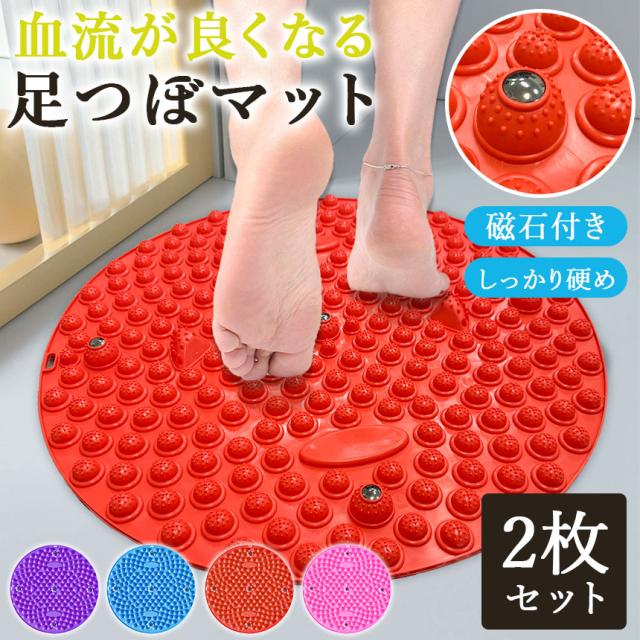 足つぼマット 2枚セット 足ツボマット 足ツボ 足つぼ マット ツボ ツボ押し 足裏 足踏み 指圧ボードマット マグネット 磁石 磁気 足のむくみ 血行促進 健康 エクササイズ ジョギング ジョギングマット スロージョギング 硬め 円形 脚