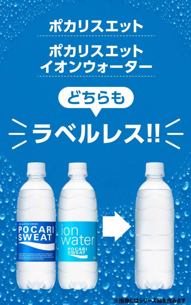 ●水分とイオン(電解質)をすばやく補給できるポカリスエットが、ラベルレスボトルに。