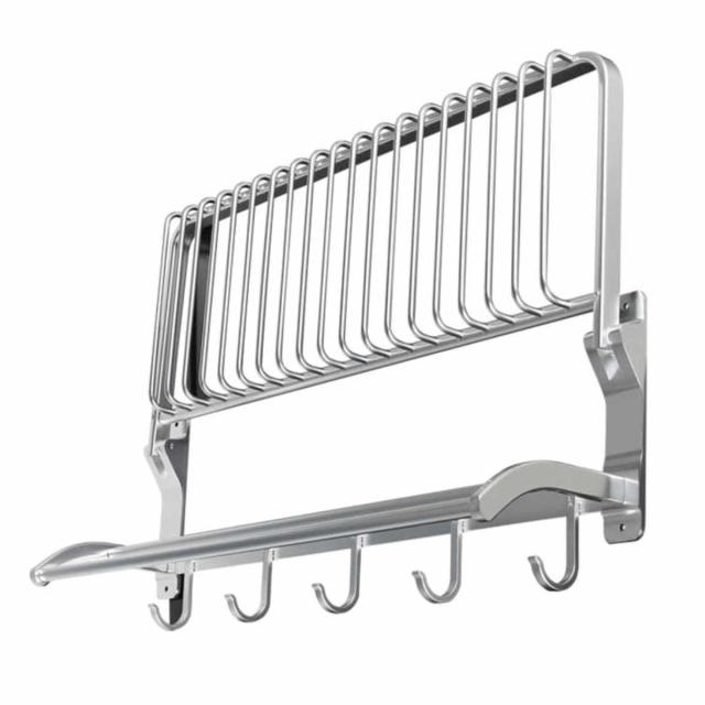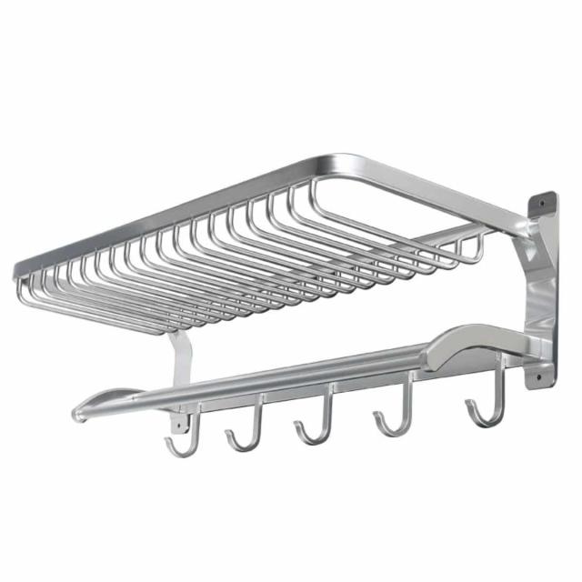 ラックだけでなく吊り下げフックがついているので、すぐに使いたい物を下げておくことができて便利です。上のラック部分は折りたたむことが出来るので、用途に合わせて使い分けることができます。