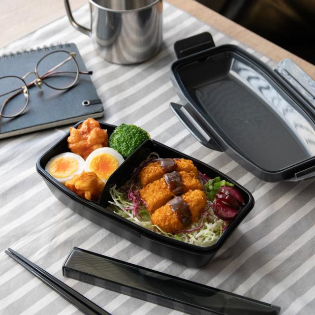 付属の仕切りを使ってご飯とおかずの定番のお弁当から、取り外してオムライスをメインに入れたお弁当、仕切りを端に寄せてのっけ丼とサラダのお弁当など、様々な盛り付け方ができるお弁当箱です。