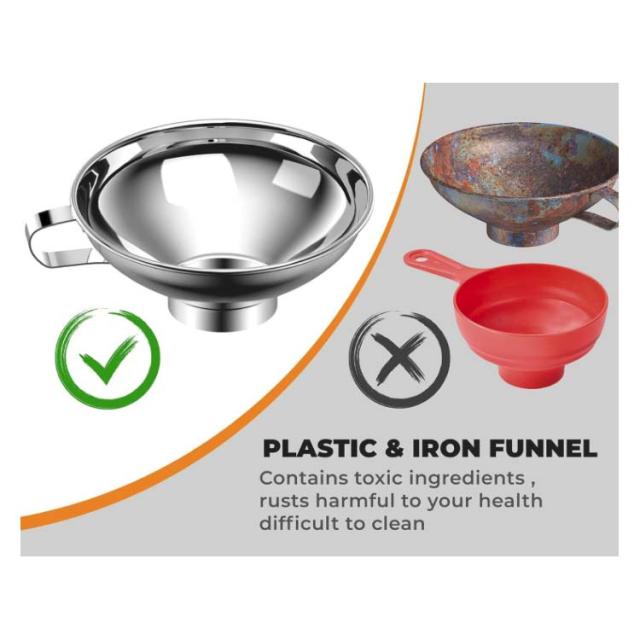 | 高品質のステンレス製多機能漏斗。容器間で液体や固形物を輸送することができます。 漏斗の口は砂糖、小麦粉、米、その他の穀物を入れるのに十分な大きさです。 キッチンで活躍します! 太い口径の漏斗。ジャムやチャツネだけでなく、オイルやビネガー、乾物の瓶詰めにも使える。 注ぎ口が大きいので、ジャム、穀物、シリアルなどの固形物に適しています。 サイズ2パックでニーズに対応この食品安全金属漏斗は、自家製ジャム、ジュース、ビネガー、オイルなどをデカントするのに理想的です。 耐久性があり、錆びにくいステンレス製で、サイドハンドルが内蔵されています。 金属漏斗は、自家製ジャム、コーディアル、酢、油などをデカントするのに理想的です。 | |