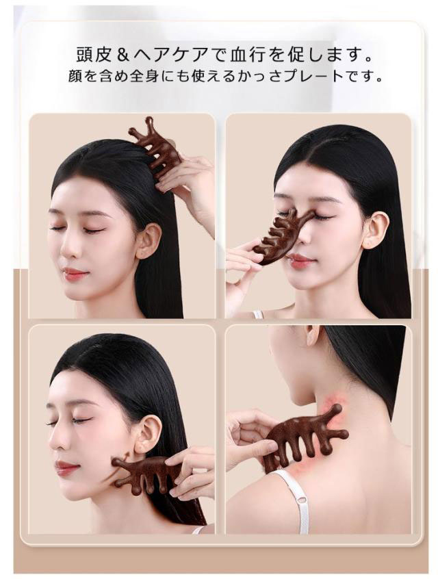 | マッサージカッサ。頭皮や顔や足をはじめ全身に使うことができます。 くしとかっさが一体型になっているので、くしで髪をとかして毛の絡まりをほぐしながら、頭皮や首元をマッサージするのにおすすめ。 頭皮&ヘアケアで血行を促します。顔を含め全身にも使えるかっさプレートです。 顔周りのリフトアップにはもちろん、腕や足のむくみ取りやツボ押しにも活躍する優れもの。 毎日のセルフケアに取り入れることで、疲れた体をリフレッシュさせ、心地よいひとときを提供します。 | |