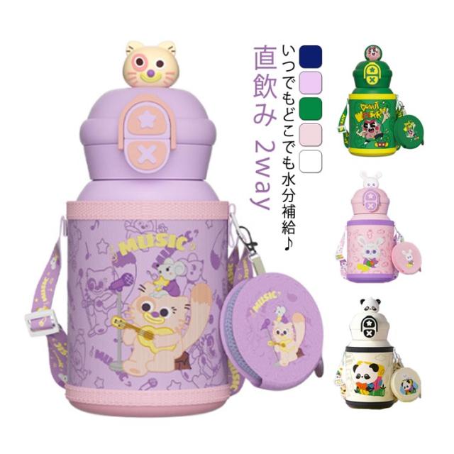 水筒 キッズ カバー付 550ml 2way ストロー付き 直飲み スポーツドリンク対応 保冷 保温 子供 こども かわいい ポーチ付き 子ども 小学生 幼稚園 幼児 園児 女の子 男の子 卒園 入学 誕生日 プレゼント