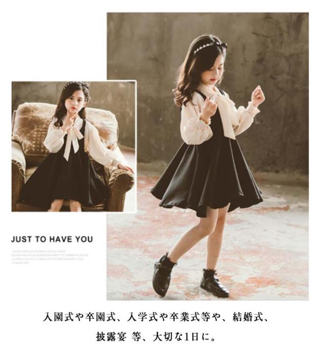 子供服 ワンピース ブラウス 2点セット 女の子 ドレス セットアップ 長袖 重ね着 ガールズ シャツ スカート フォーマル 春秋 小学生 発表会 入学式 結婚式 音楽会 記念撮影 冠婚葬祭