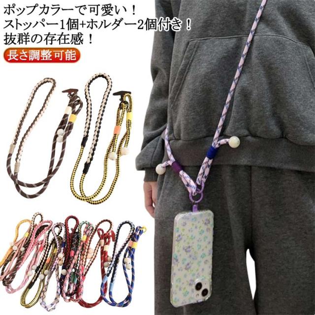 ショルダーストラップ 太め 編み込み ソロモン編み スマホ ストラップ 首掛け パラコード 可愛い ポップ ストラップ パラコード カラフル ソロモン編み スマホショルダーストラップ ポップカラーで可愛い 送料無料