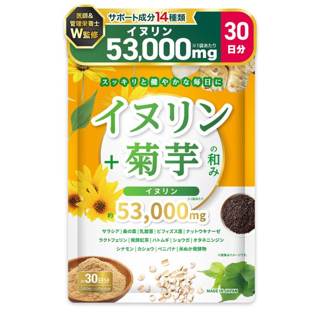 【医師・管理栄養士W監修】 イヌリン 菊芋 サプリ 53000mg/袋 水溶性 食物繊維 乳酸菌 キクイモ きくいも 240粒 30日分 GMP国内製造 イヌリン菊芋の和み