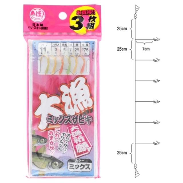 - 大漁ミックスサビキ 3枚組 ミックス 針11号-ハリス3号
