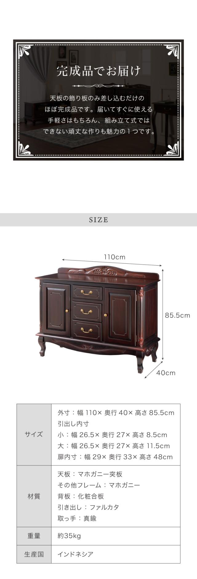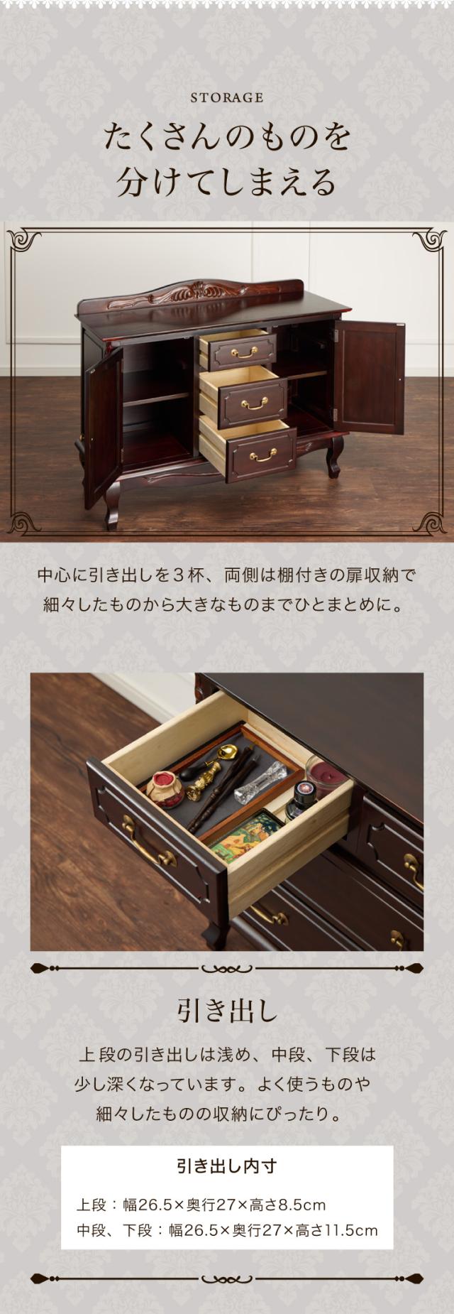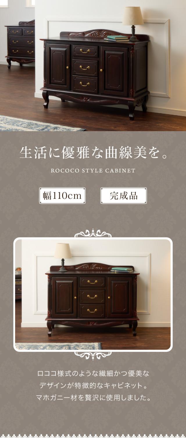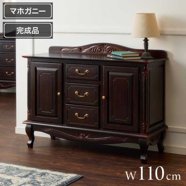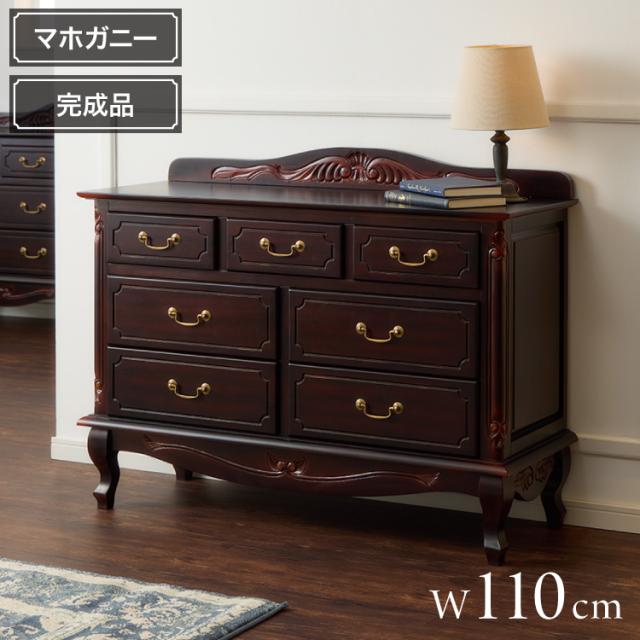 キャビネット 幅110cm マホガ二ー材 完成品 ブラウン 高級感 エレガント ブラウン ミニチェスト ローチェスト タンス チェスト 収納 天然木 木製 引き出し 大容量 コンパクト 省スペース 上品