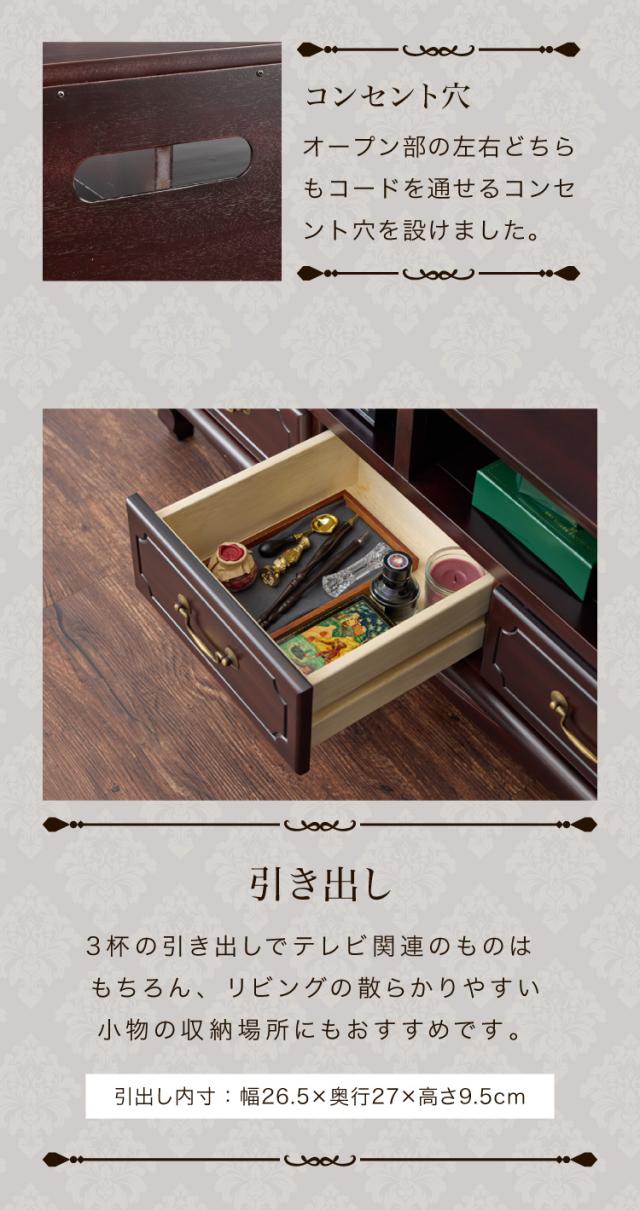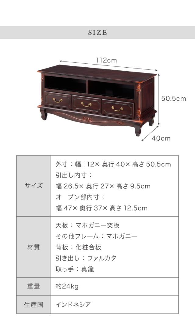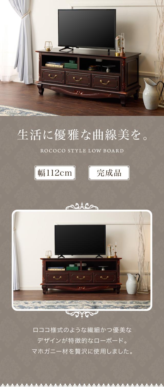 ローボード 幅112cm マホガ二ー材 完成品 ブラウン 高級感 エレガント ブラウン テレビ台 TV台 テレビボード リビングボード 収納 天然木 木製 引き出し 大容量 コンパクト 省スペース 上品 優
