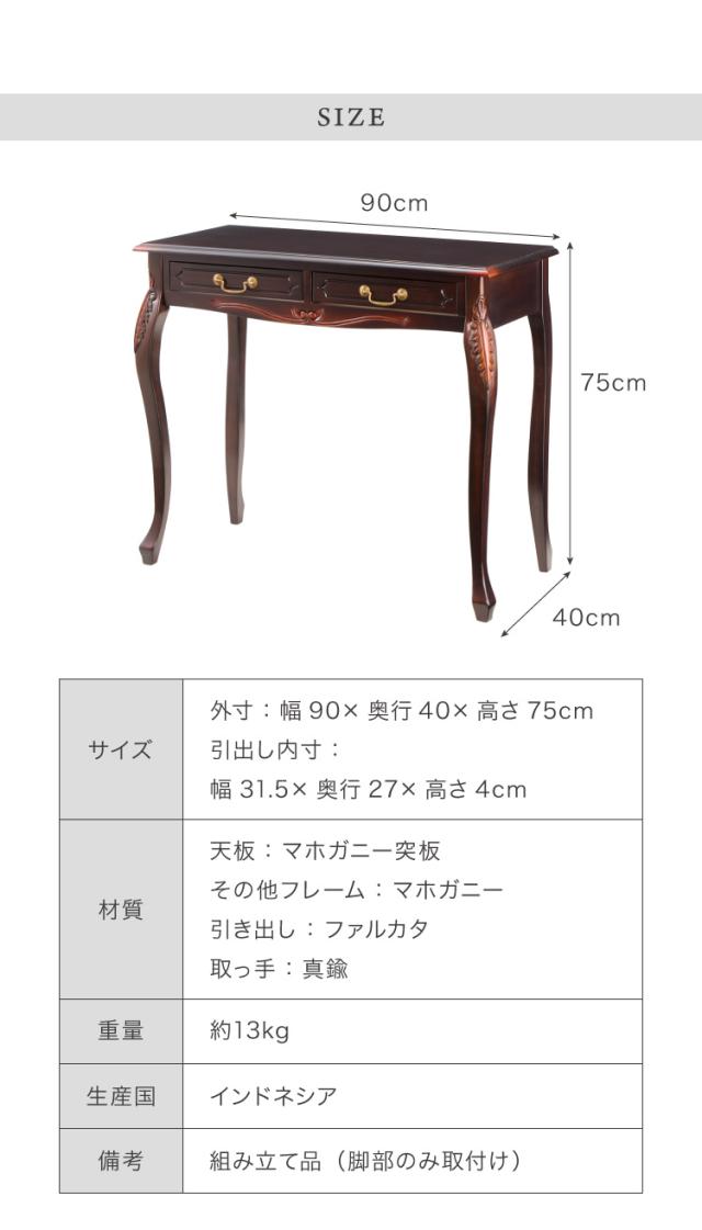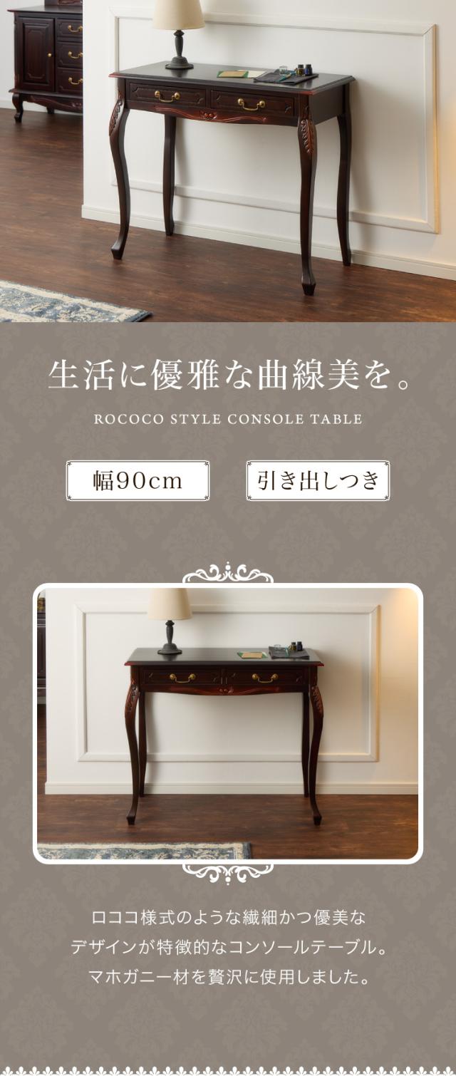 コンソールテーブル 幅90cm マホガ二ー材 完成品 ブラウン 高級感 エレガント ブラウン パソコンデスク 机 テーブル おしゃれ 北欧 インテリア コンソール サイドテーブル カウンターテーブ