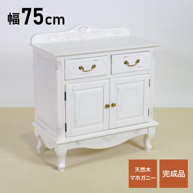 キャビネット 幅75cm マホガ二ー材 完成品 ホワイト 高級感 エレガント ホワイト ミニチェスト ローチェスト タンス チェスト 収納 天然木 木製 引き出し 大容量 コンパクト 省スペース 上品