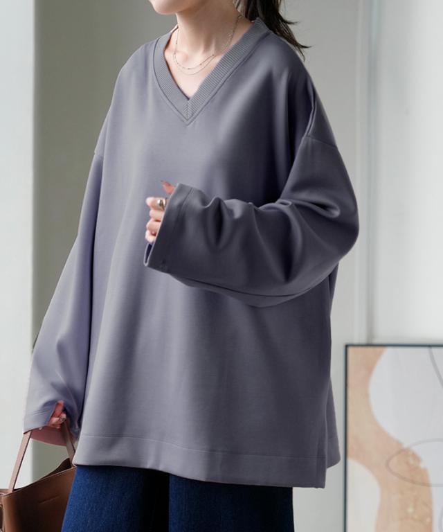 袖丈が選べるストレッチポンチ素材のプルオーバートップスです。